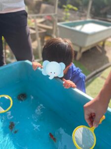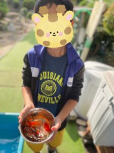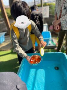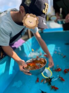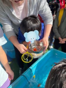 すくった金魚を