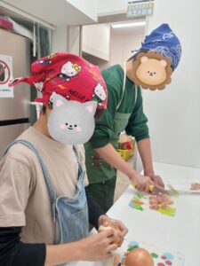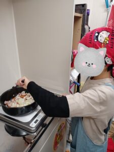 クッキング♪~カレー作り~ 2025 12/15 ブログ 2025年12月15日 こんにちは(^▽^)/ わんだーうるの忽那です。 12月半ばに入り、 外もすっかり寒くなりましたね^^; クリスマスも近づき、 ワクワクが止まりません♪笑 今回のブログは、 カレー作りです(*^^*) エプロンと三角巾を着て、 準備完了です☆彡 野菜を切るところから フライパン調理まで、 力を合わせて頑張りました♪ 難しい作業は 職員と一緒に、 ゆっくり進めていきます☆ !!! おいしそうなカレー♪ お友達と一緒に 頑張って作った料理は、 いつもよりおいしく感じるね(^^♪ カレーを食べた後は、 近くの公園へ行きました(^^) 太陽が出ていてポカポカ~~♪ のんびり過ごしてくれたみたいで 良かったです(^_-)-☆ また美味しい料理を、 一緒に作ろうね♪ 最後まで読んでいただき ありがとうございました♪ また更新します(^▽^) ブログ おさかな釣り♪ 関連記事 おさかな釣り♪ 2025年11月17日 ハロウィンパーティー♪☆ 2025年11月6日 防災センター~体験~♪ 2025年10月29日 野球観戦♪~京セラドーム~ 2025年10月16日 クリーンランド♪ 2025年9月25日 ☆うる祭り☆~第2弾~ 2025年8月26日 ☆うる祭り☆~第1弾~ 2025年8月26日 Mooovi尼崎♪ 2025年8月18日