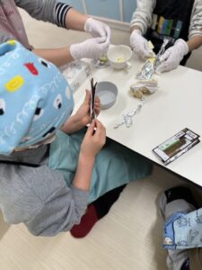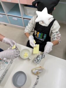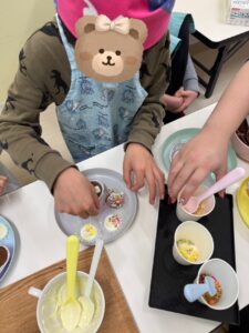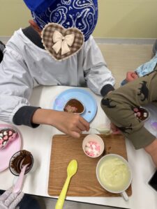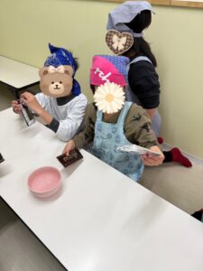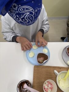 ~バレンタイン♪~ 2026 2/17 ブログ 2026年2月17日 こんにちは(^▽^)/ わんだーうるの忽那です。 2月は節分にバレンタイン☆ 楽しいイベントが たくさんですね♪ 今回のブログは、、、 バレンタインブログです♪ みんなでチョコレートを 作りました(^^♪ まずは準備から☆ エプロンに着替えて、 先生の説明を しっかりと聞きます(^^) 役割分担も決めて~~っ クッキングスタート♪ 主役のチョコレート♪ を~、、、 細かく砕いていきます☆ 大人でも大変な作業、、、 みんなよく頑張りました(^^♪ 砕いたチョコを お湯で溶かして、 型に流していきます♪ こぼさないよう慎重に、、、 みんな上手~~♪ 最後に、 かわいくトッピング♪ カラフルなお菓子たちを チョコレートの上に 乗せていきます☆ おいしそう~~(*^^*) ですが、、、 少しお別れの時間が あります、、、(冷蔵庫へ笑) チョコレートと再会です!♪ しっかりと固まって、 すごくおいしそう~~に 完成しました(*^^*) みんな喜んでくれたみたいで よかった~~っ♪ またみんなで、 お菓子作りに挑戦しようね☆ 最後まで読んでいただき ありがとうございました♪ また更新します(^▽^) ブログ ~お正月あそび&クッキング♪~ 関連記事 ~お正月あそび&クッキング♪~ 2026年1月27日 ~クリスマスイベント~♪ 2026年1月19日 クッキング♪~カレー作り~ 2025年12月15日 おさかな釣り♪ 2025年11月17日 ハロウィンパーティー♪☆ 2025年11月6日 防災センター~体験~♪ 2025年10月29日 野球観戦♪~京セラドーム~ 2025年10月16日 クリーンランド♪ 2025年9月25日
